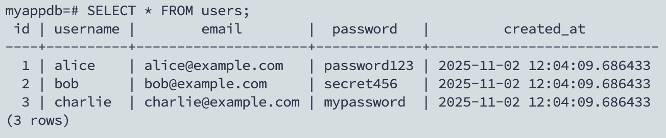 You are now connected to database "myappdb" as user "postgres".